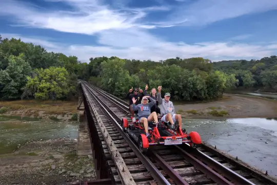 Departs at 1:30pm; 2 hour excursion on manually propelled 4 person rail cars –you can be either be a peddler or a passenger.