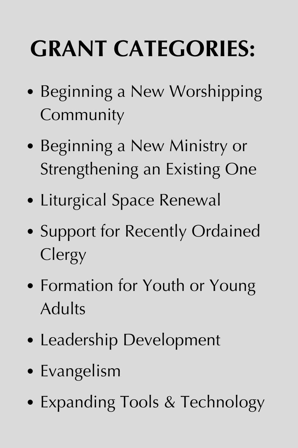 SEED—Applicants may apply for a one-time SEED grant. These are smaller grants geared to individuals or groups launching new projects or beginning a new aspect of an existing ministry to reach new people or in new places or in new ways.