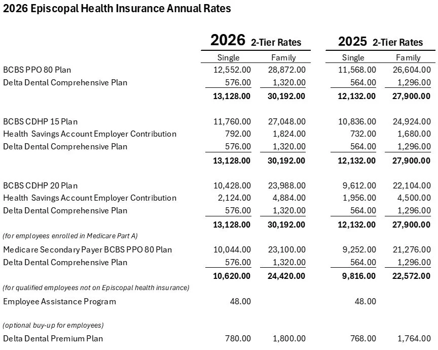 Employees newly hired have a 30-day open enrollment period in which to enroll in health coverage. Contact awagner@iowaepiscopal.org for enrollment information.