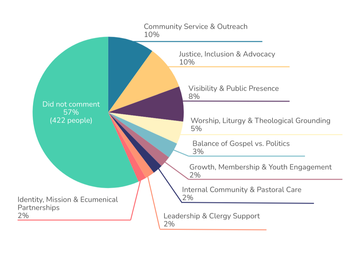 Comments: Be seen in community events, Pride, protests, local fairs, ecumenical partnerships; more publicity of existing ministries; better use of media and social media; clergy speaking out in public.